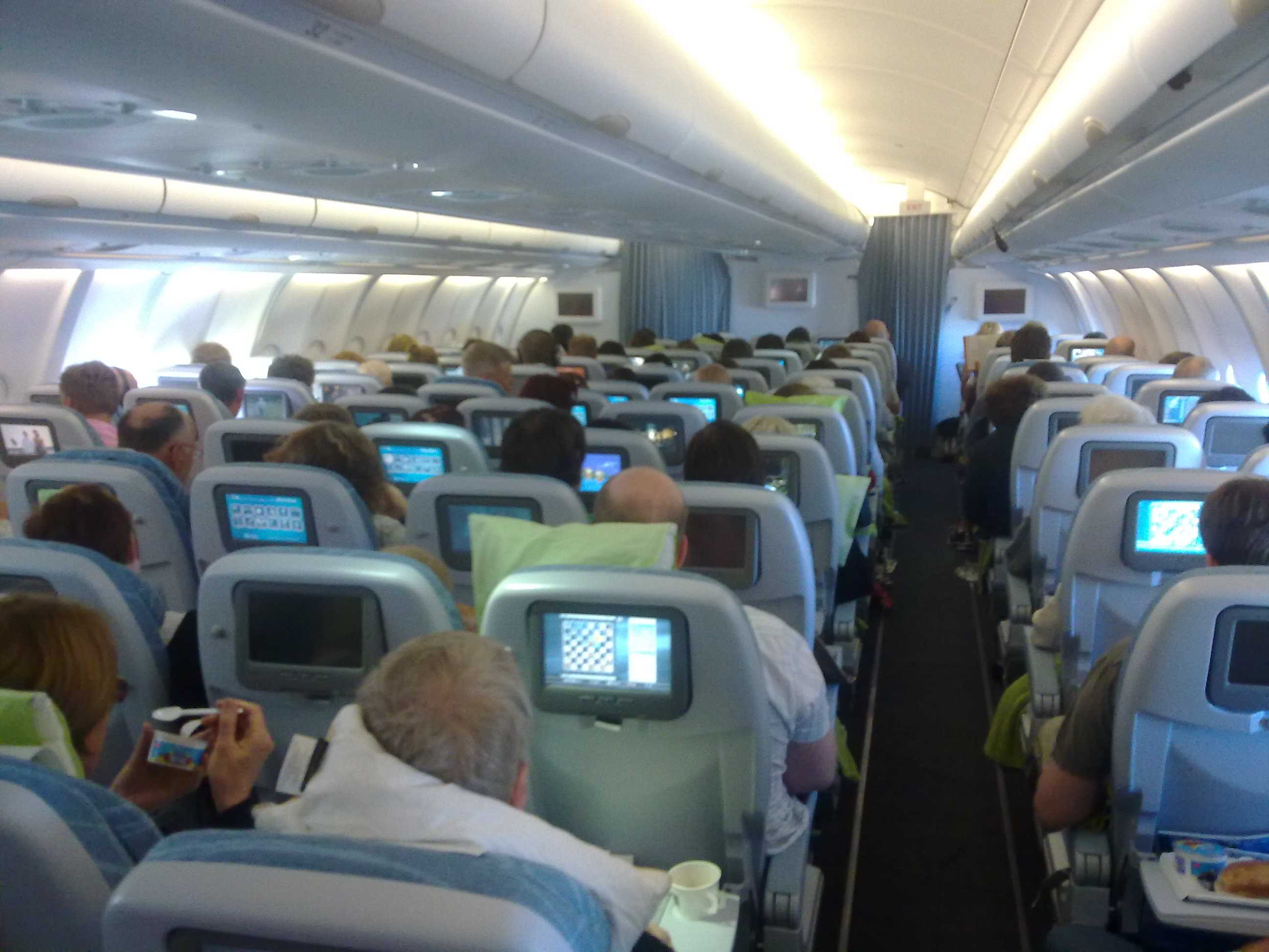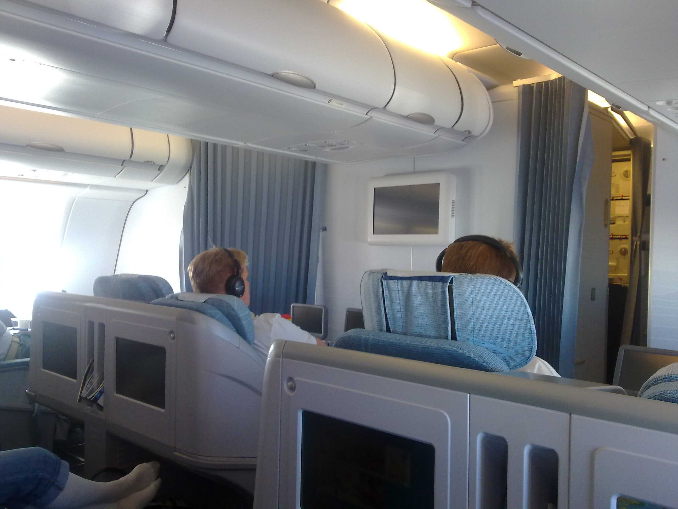 After settling in, the seat felt nice. Not the best in the world, but totally OK for a coach seat. The first real disappointment came with the media system. The screen was big, yes, and lots of content available, but nothing seemed to work. After a while, a cabin attentand announced that the media system was not functioning and needed to be rebooted. The funny details were that the reboot was going to take twenty minutes, and the business class seats could not be adjusted during the reboot. Hah! Finally movies played OK, but my favourite programs (the outside camera and map) did not work during the whole flight.