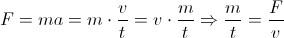 Lets examine the speed v here. We can simplify and think that the engine is bolted into ground, so the only movement is the air through the engine, v being solely the speed of exhaust gas. We know force of the engine, so let’s see if we can substitute air mass flow with the force: