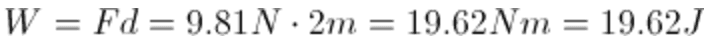 If a hand lifts 1-kilogram object to 2 meters from the ground, we can calculate how much work the arm has done (how much energy is consumed for the mechanical work). Work is measured in Joules (J). Work roughly equals to the consumed energy, if we forget other energy sinks such as produced heat:
