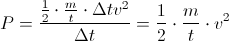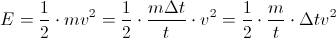 Let’s start the basic formula of kinetic energy, which we manipulate to show the mass flow rate (m/t) at the given time period of Δt: