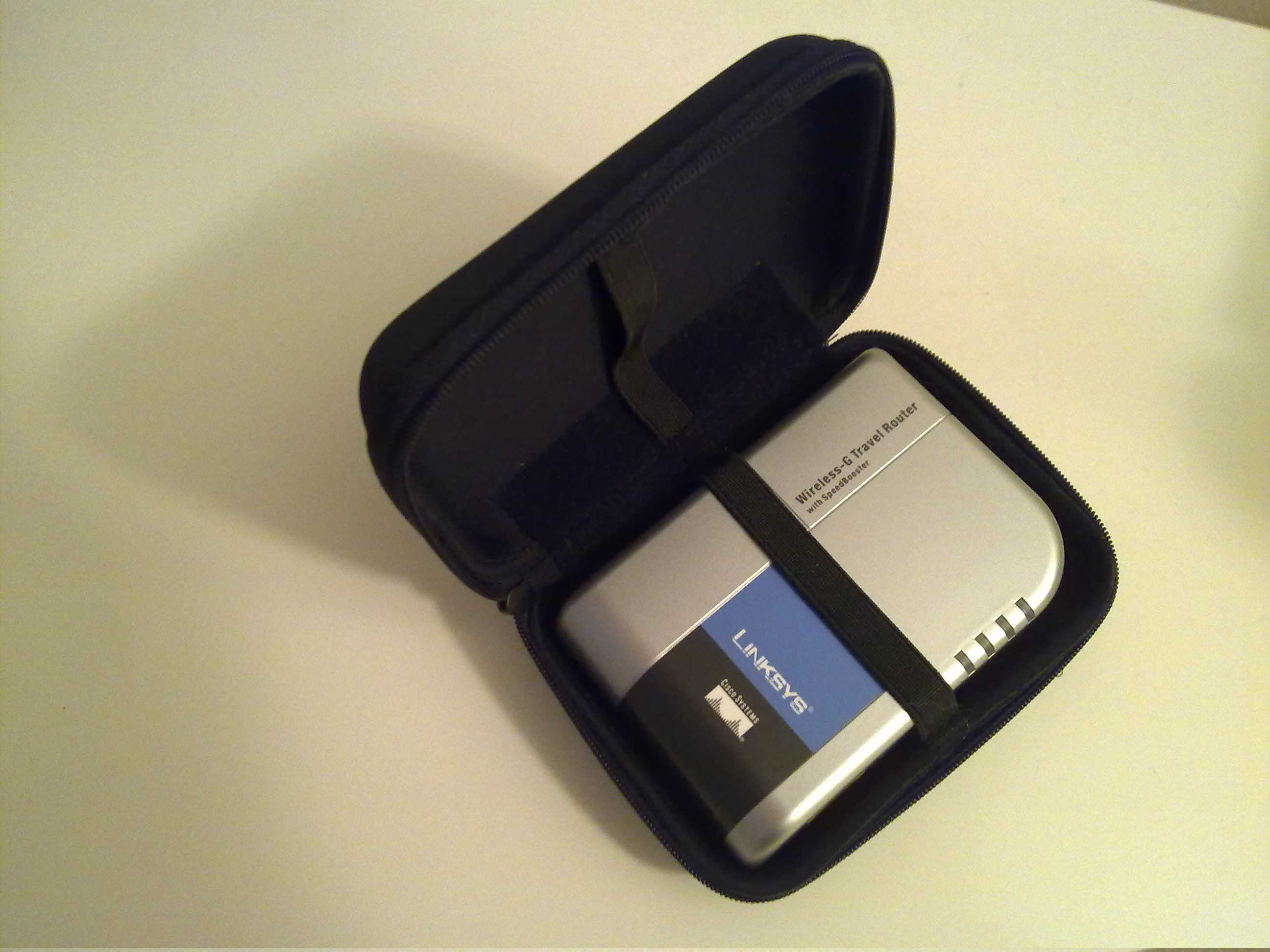 I’ve been using Linksys Wireless-G Travel Router (WTR54GS), a product I just happen to have. There are plenty of travel routers to choose from, naturally. However, this Linksys has served me rather well (works with both 120V and 240V power).